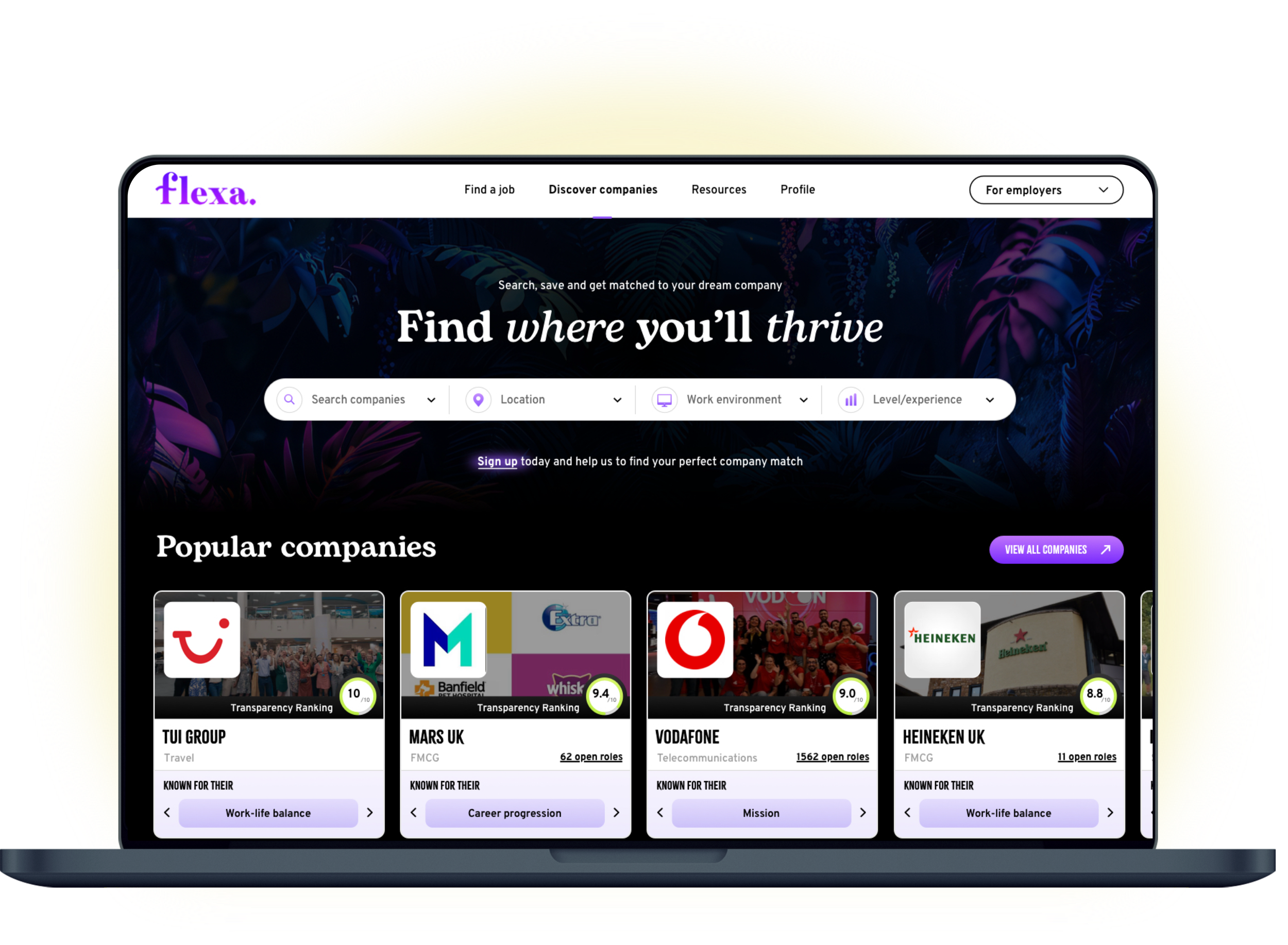 Used by over four million people and trusted by companies like Mars and Microsoft, Flexa combines verified employer data with over two billion data points to provide unique insights into what talent wants and how employer brands perform - turning workplace data into real competitive advantage.